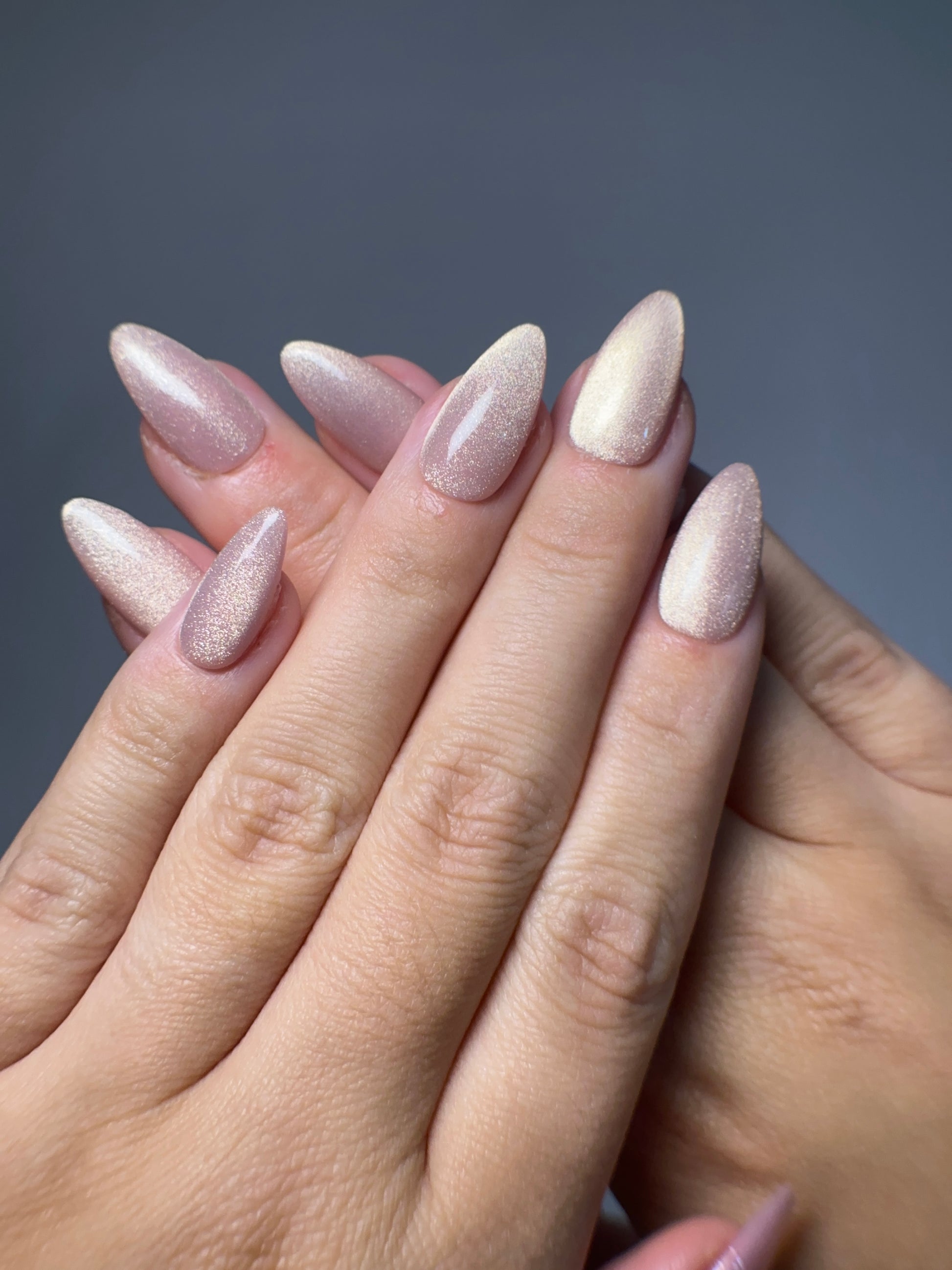 A dreamy blend of soft blush pink and golden shimmer, Golden Hour Glaze captures the perfect sunset glow at your fingertips. This radiant set combines elegance with a subtle sparkle—perfect for any bride, baddie, or beauty who loves a natural look with a luxe finish.