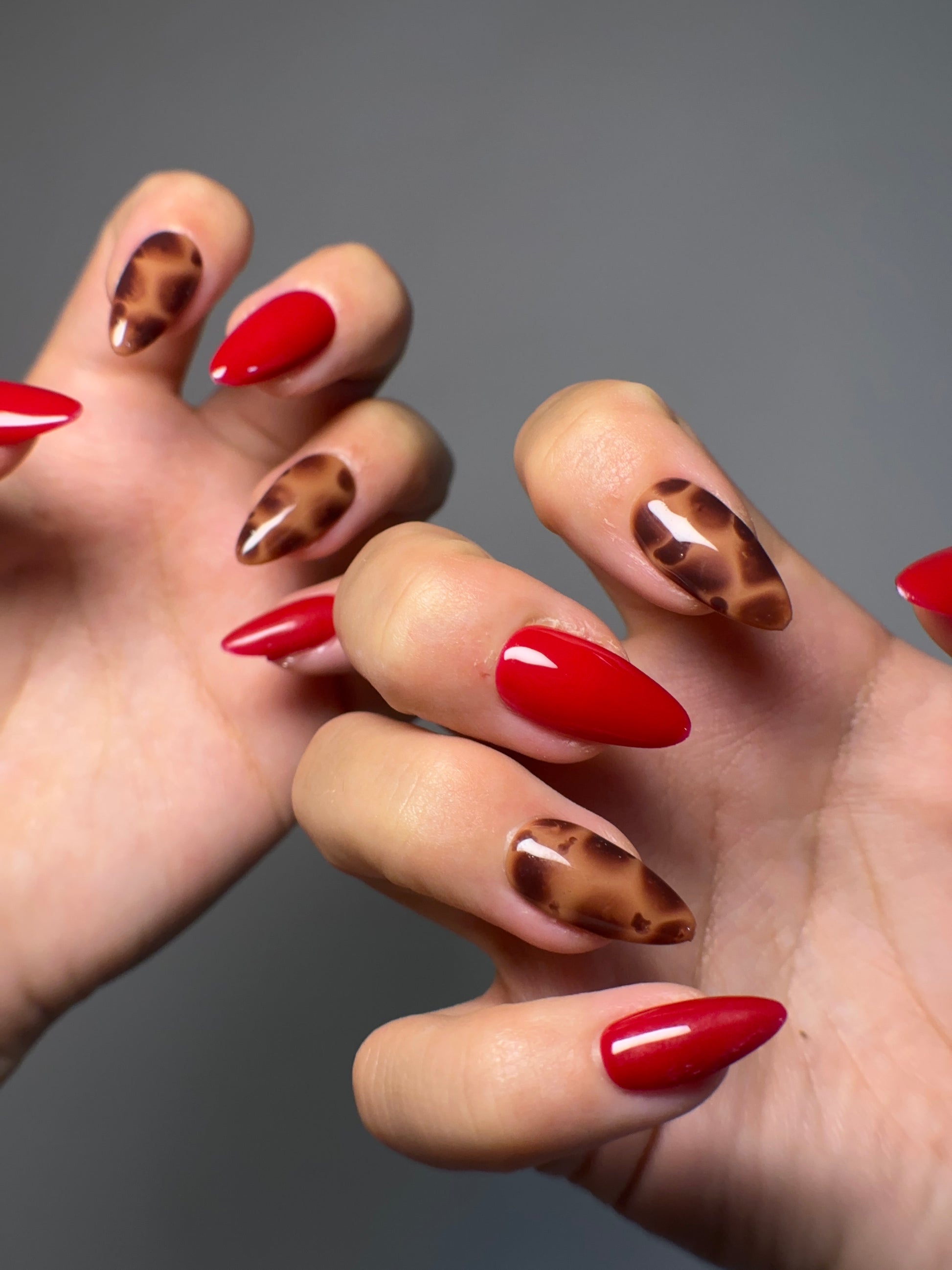 Elevate your style with our Scarlet Tortoise press-on nails – a bold fusion of classic red and luxe tortoiseshell. This set is perfect for the trendsetter who loves a mix of fierce and sophisticated. Handcrafted with a high-gloss finish and salon-quality detail, these nails are reusable, durable, and made to turn heads. Whether you're heading to a night out or just want that everyday glam, Scarlet Tortoise brings the perfect balance of edge and elegance.