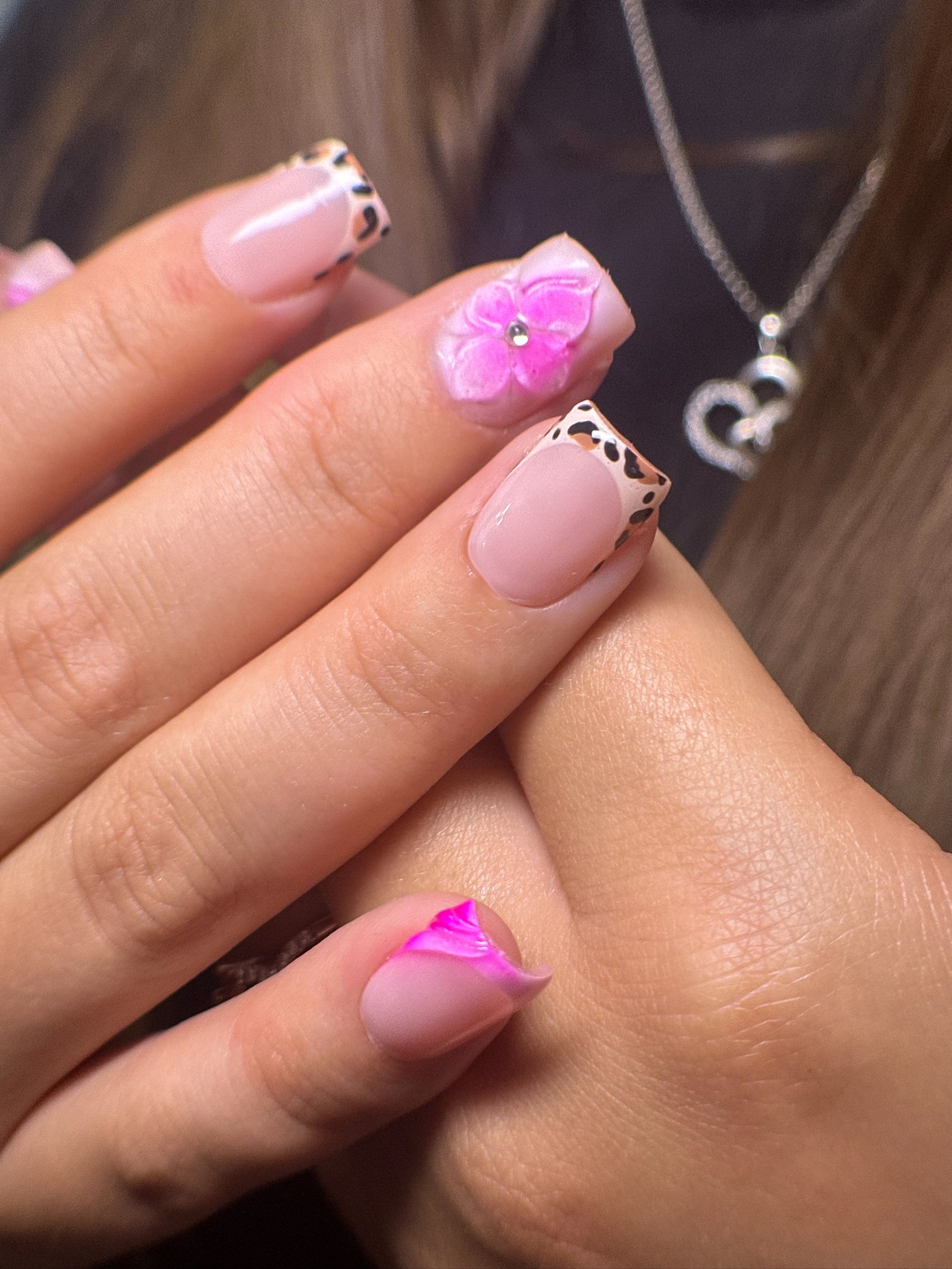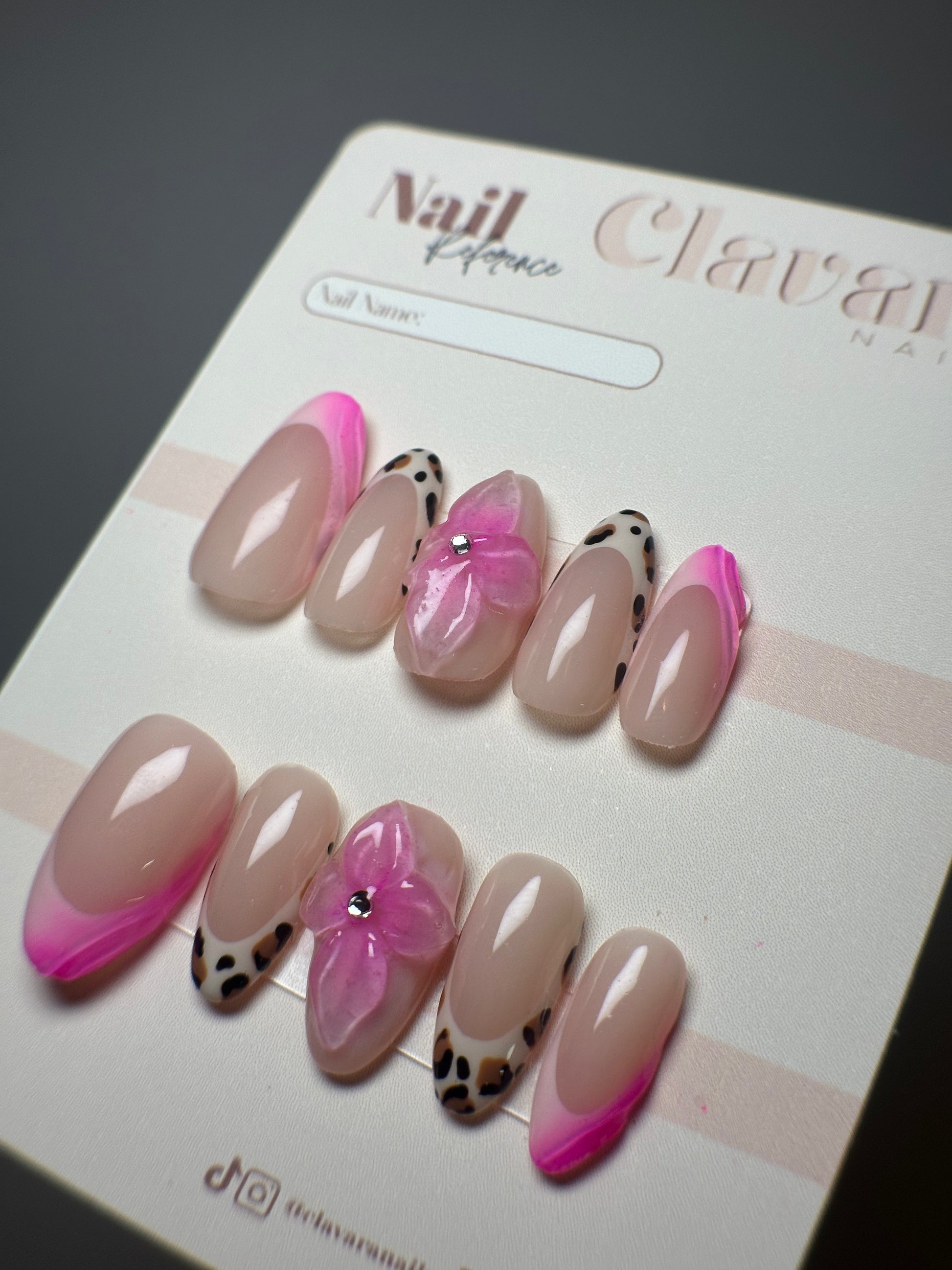 Wild Whisper is where soft glam meets untamed spirit. Featuring bold cheetah accents, delicate pink florals, and a pop of hot pink with a swirl, this set is made for the babe who's both gentle and fierce. Subtle, striking, and impossible to ignore - let your nails do the talking.